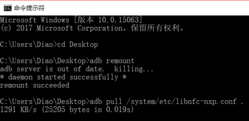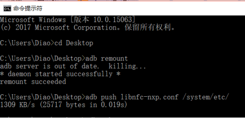 8)輸入adb push libnfc-nxp.conf /system/etc/