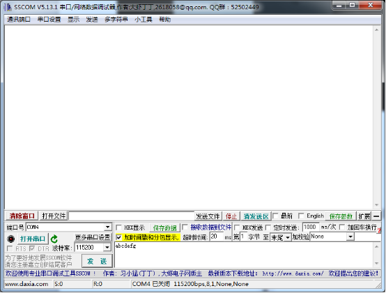 4)電腦端安裝串口調(diào)試器,打開串口,點(diǎn)擊發(fā)送。